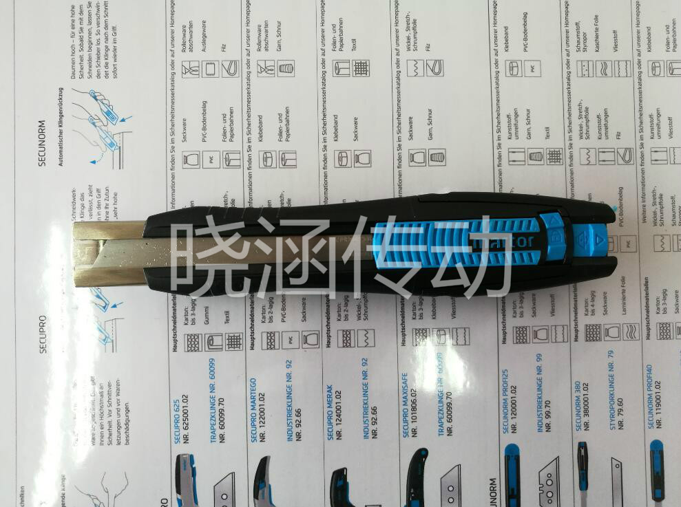 上海福名智實(shí)業(yè)有限公司,專業(yè)銷售德國(guó)原裝進(jìn)口LUTZ刀片及MARTOR安全刀具,LUTZ GmbH &Co.KG和MARTOR KG是近百年的德國(guó)專業(yè)研發(fā)生產(chǎn)刀具企業(yè). 廣泛應(yīng)用于印刷、塑料、皮革、林業(yè)、橡膠、塑料、食品、鋁箔、煙草、卷煙、包裝材料、薄膜、電線、化纖、玻纖、紡織、木工、制袋機(jī)、造紙、鋁箔、冶金等方面,并在國(guó)際上享有一定的知名度,具有品種規(guī)格齊全、切削效果明顯、安全防護(hù)性高、更換頻率低、使用壽命延長(zhǎng)等優(yōu)越的特點(diǎn)!